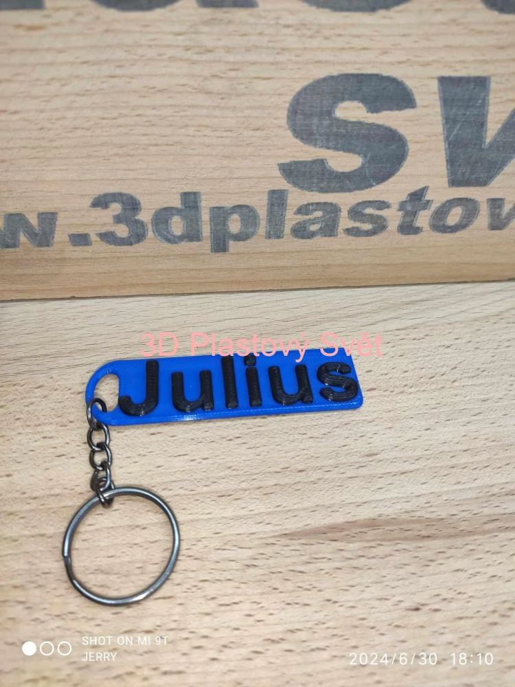 Klíčenka Julius Rozměry: 7,3 x 2 x 0,4 cm, váha: 5 gramů. Pokud chcete vyrobit v jiných barvách (než je na fotkách), tak to prosím napište do poznámky v košíku. Cena za 1 kus. Nabídka barev zde: https://www.3dplastovysvet.cz/nabidka-barev  celý popis