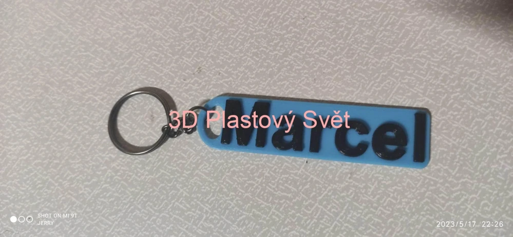 Klíčenka Marcel Rozměry: 8 x 2 x 0,4 cm, váha: 5 gramů. Pokud chcete vyrobit v jiných barvách (než je na fotkách), tak to prosím napište do poznámky v košíku. Cena za 1 kus. Nabídka barev zde: https://www.3dplastovysvet.cz/nabidka-barev    celý popis