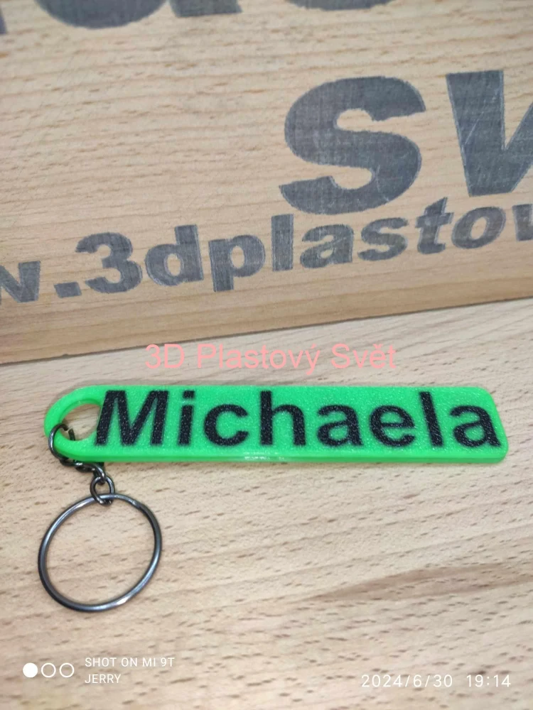 Klíčenka Michaela Rozměry: 10,7 x 2 x 0,4 cm, váha: 7 gramů. Pokud chcete vyrobit v jiných barvách (než je na fotkách), tak to prosím napište do poznámky v košíku. Cena za 1 kus. Nabídka barev zde: https://www.3dplastovysvet.cz/nabidka-barev    celý popis