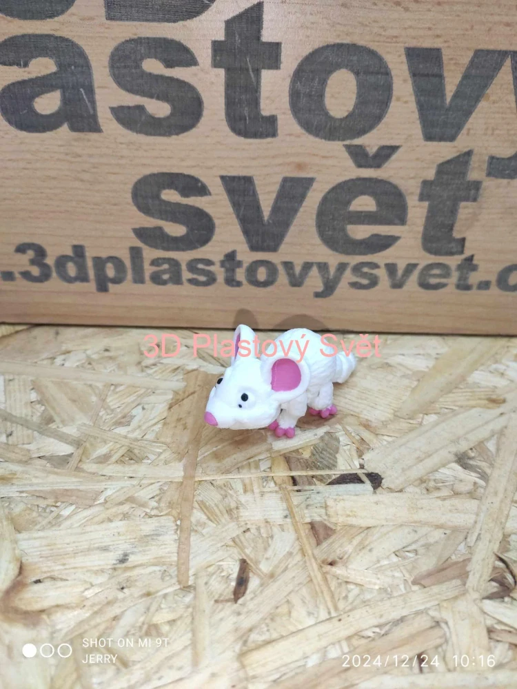 Myška má hýbací nohy, ocas a hlavu.