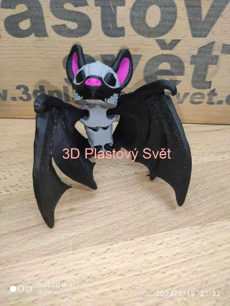 Netopýr má hýbací hlavu, nohy a křídla.